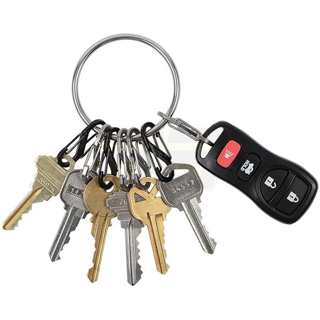 Nite Ize BigRing Steel - Argent : Le set comprend 6 S-Binders #0.5 et 1 support KeyRack. Acier inoxydable, design compact, parfait pour organiser les clés et les petits objets.