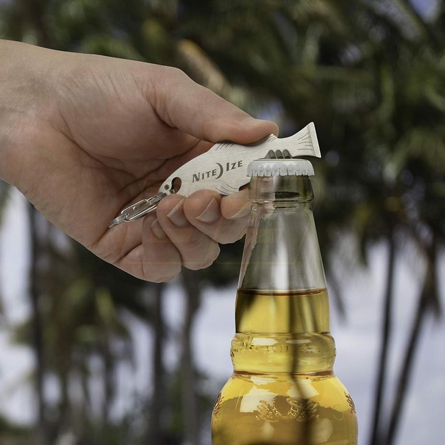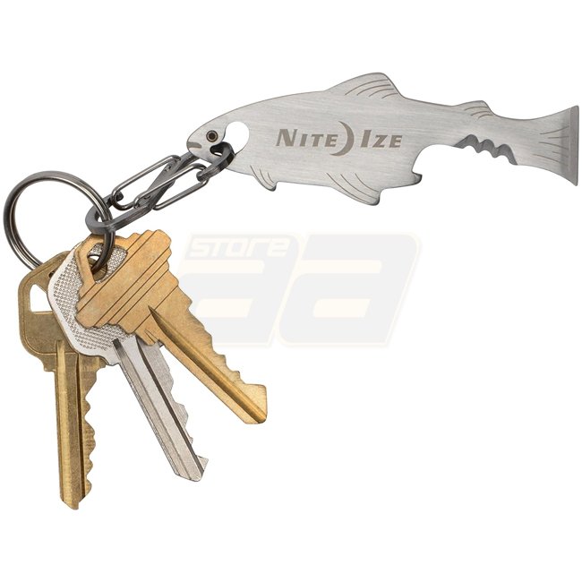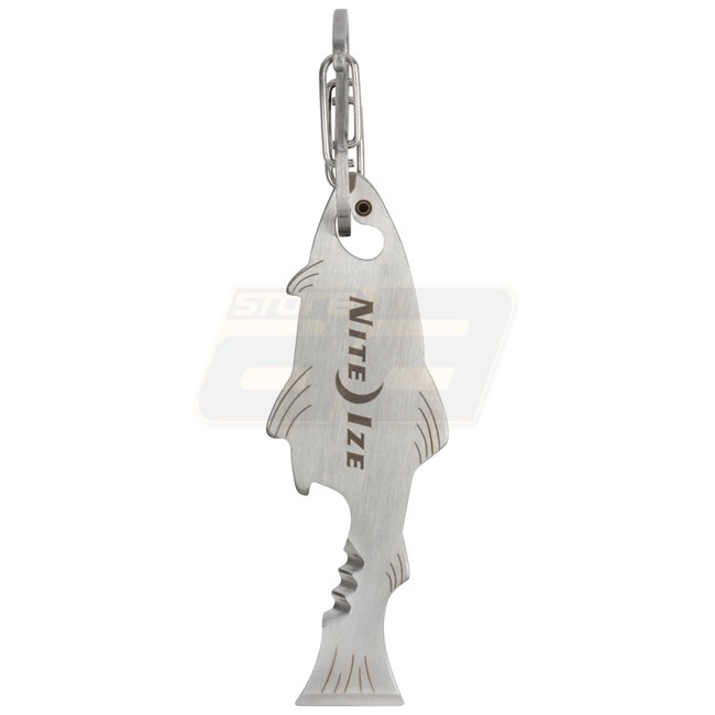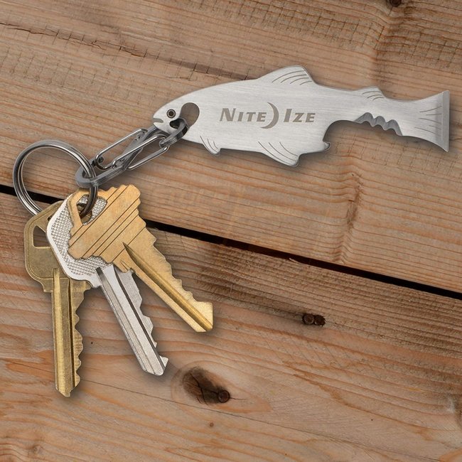 Outil de clé DoohicKey FishKey de Nite Ize - Outil multi-usage de la taille d'une clé avec un design en forme de poisson, ouvre-bouteille, bord dentelé et tournevis. Attachable de manière pratique avec un S-Biner en acier inoxydable.
