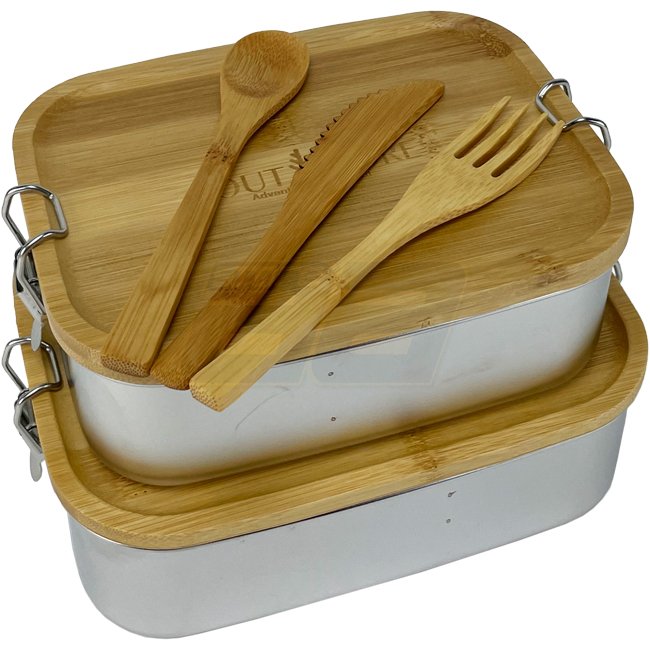 Le récipient en inox incassable et non polluant avec un couvercle en bambou: La OutStore Bamboo Food Box