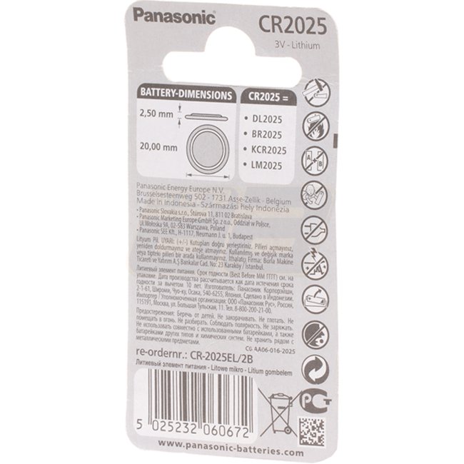 Panasonic CR2025 2pcs - piles bouton au lithium fiables et durables pour divers petits appareils électroniques. Assurez-vous que vos appareils restent alimentés et prêts à l'emploi.