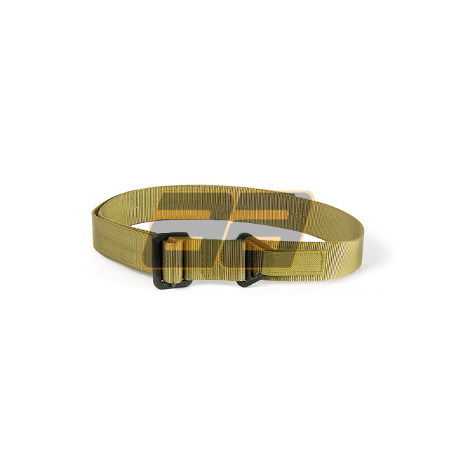 Bandeau de ceinture Rigger CQB L - Tan : sangle de 1 3/4 pouces de large, longueur de 96-112 cm. Anneau en D factice, non conçu pour porter des charges.