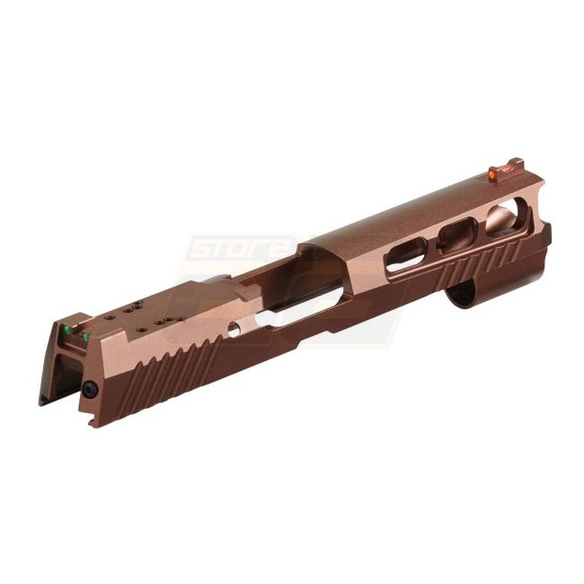 La Competition Lightweight Slide de PH+ est conçue pour les pistolets VFC Sig Sauer M17/P320, offrant une mise à niveau compétitive à votre arme airsoft. Fabriquée en aluminium CNC 7075 de haute qualité, cette culasse assure des performances fiables et précises. Les découpes allégées réduisent le poids et améliorent la maniabilité, tandis que la plaque de montage intégrée permet d'installer facilement des optiques pour une acquisition de cible améliorée. Pour ceux qui préfèrent les viseurs en fer, elle est équipée de viseurs à fibre optique pour une visée rapide et précise.