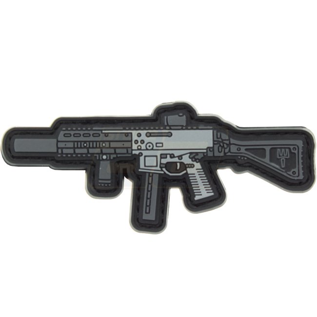 Produit officiellement autorisé par B&T Suisse. Patch en caoutchouc avec Velcro. Dimensions : 83 x 35mm.
