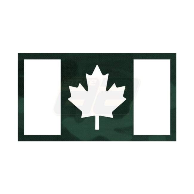 Fourche à foin Canada IR Patch imprimé - Multicam présentant une face avant imprimée en feuille IR et une face arrière à surface velcro. Dimensions 90 x 50 mm.