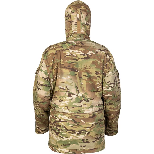 • Capuche Ajustable: La capuche peut être ajustée en circonférence et en hauteur, s’adaptant confortablement aux casques balistiques.