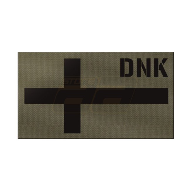 Fourche à foin Danemark IR Print Patch - Vert Ranger. Devant : feuille IR, imprimée. Arrière : surface à crochets. Dimensions : 90x50mm.