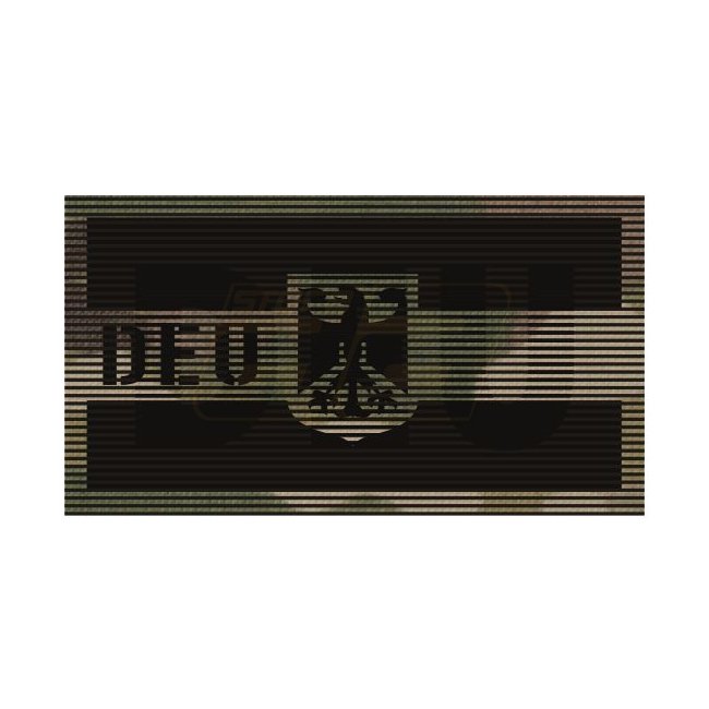 Pitchfork Germany IR Dual Patch en Multicam, doté d'une face avant en papier aluminium IR et d'une face arrière à surface velcro. Dimensions : 90 x 50 mm.