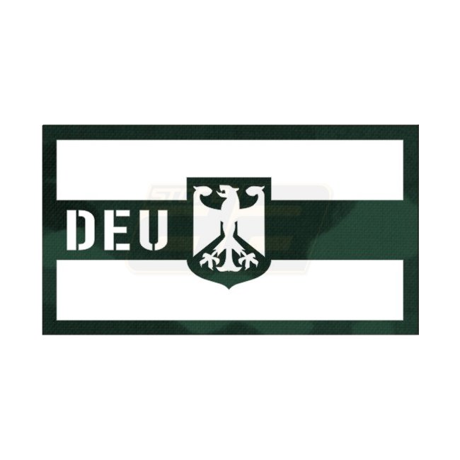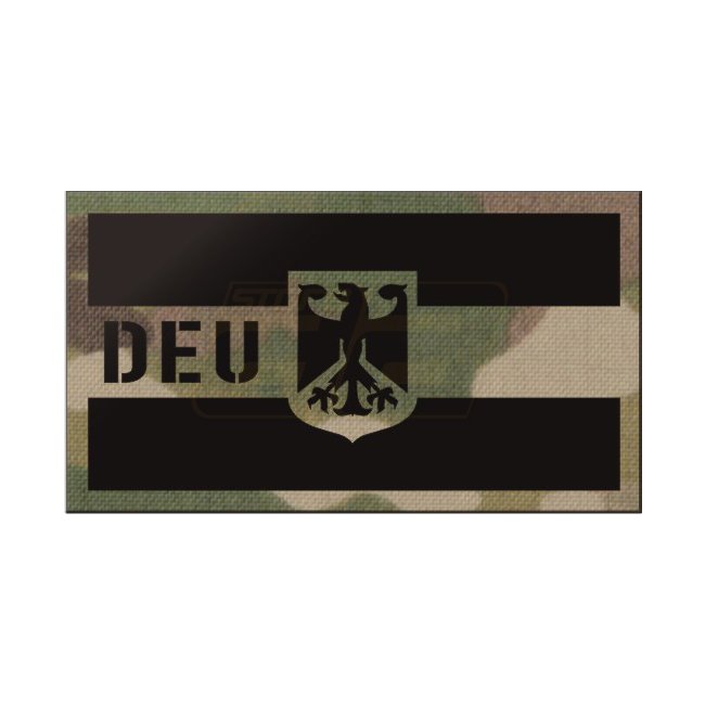 Fourche Allemagne IR Patch Imprimé - Multicam. Devant : feuille IR, Arrière : surface à crochet. Dimensions : 90 x 50 mm.