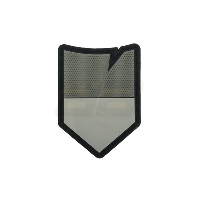 Patch tactique Compact Pitchfork en couleur noire élégante avec dos Velcro, mesurant 37 x 45 mm.