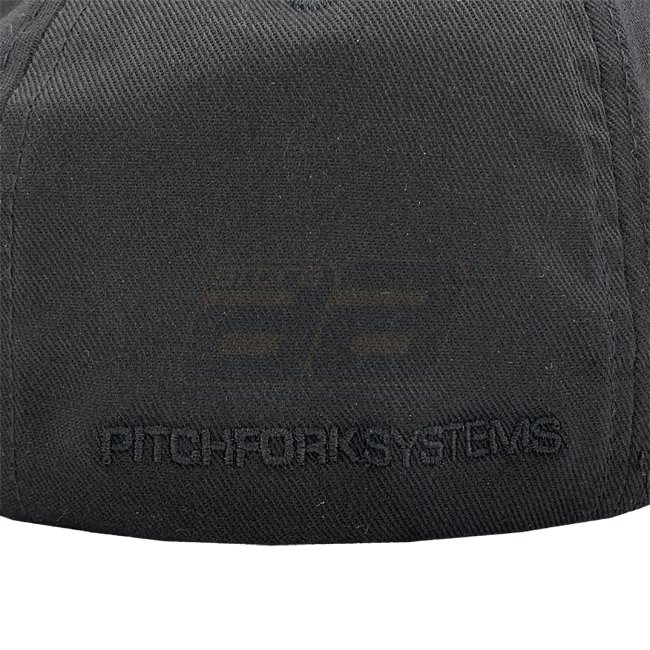 Casquette FlexFit originale avec Trident à l'avant et écriture Pitchfork Systems subtile à l'arrière.
