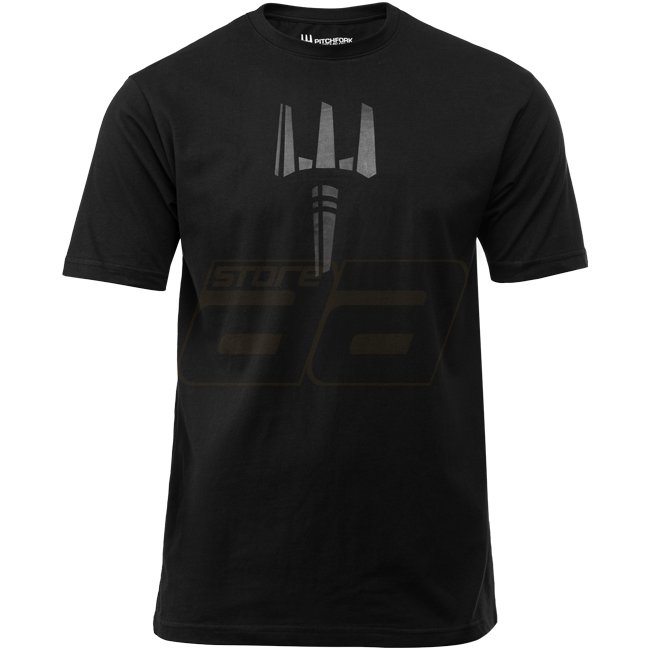 Restez à la mode avec ce T-shirt imprimé Trident Pitchfork en noir ! Comporte une grande impression de trident à l'avant et un petit trident dans la zone du cou arrière. Coupe semi-serrée pour un ajustement parfait. Fabriqué dans un mélange confortable de