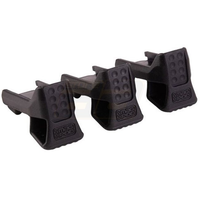 Le MAGPOD est spécialement conçu pour la plaque de base PMAG, qui est compatible avec les chargeurs AEG et GBB. Il remplace la plaque de base et remplit la cavité à l'avant, ajoutant de la durabilité et un aspect esthétique épuré. La zone de base optimisée élimine pratiquement le mouvement de bascule lors de l'utilisation du chargeur comme monopode. La plaque de base est recouverte de Santoprene pour améliorer la traction sur les surfaces dures/lisses et les panneaux latéraux sont cloutés pour offrir une meilleure adhérence. La matrice de points sur la plaque de base permet à l'utilisateur de marquer le magazine avec des caractères alphanumériques ou des pictogrammes. Il s'agit d'une installation simple et ne nécessite aucune modification pour l'installation.