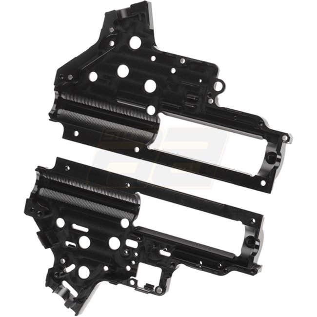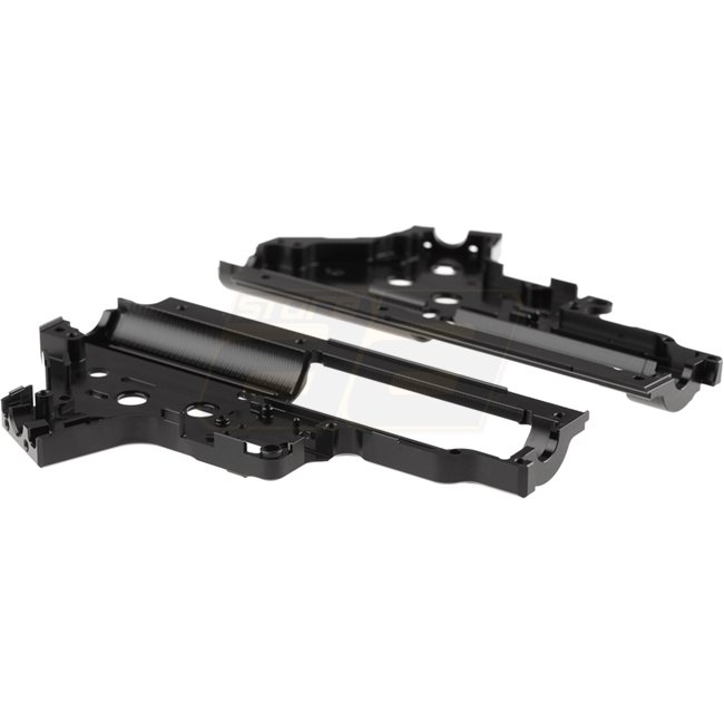 Boîtier de gearbox CNC Retro Arms V2 8mm QSC VFC - Boîtier de gearbox de haute qualité conçu pour les répliques airsoft VFC, avec un usinage CNC de précision et des roulements à billes de 8 mm pour un fonctionnement fluide.