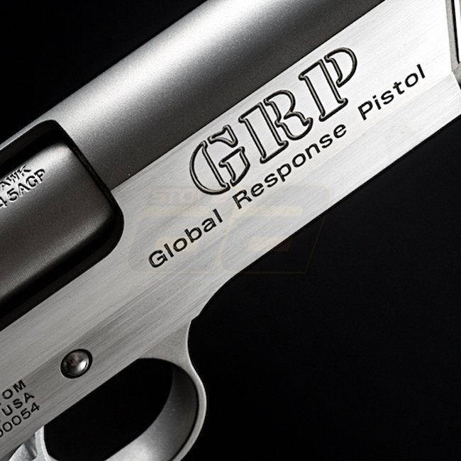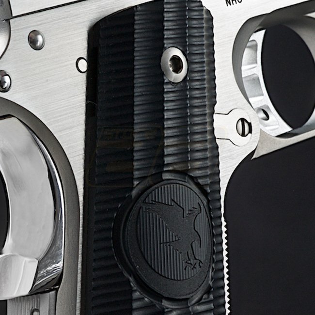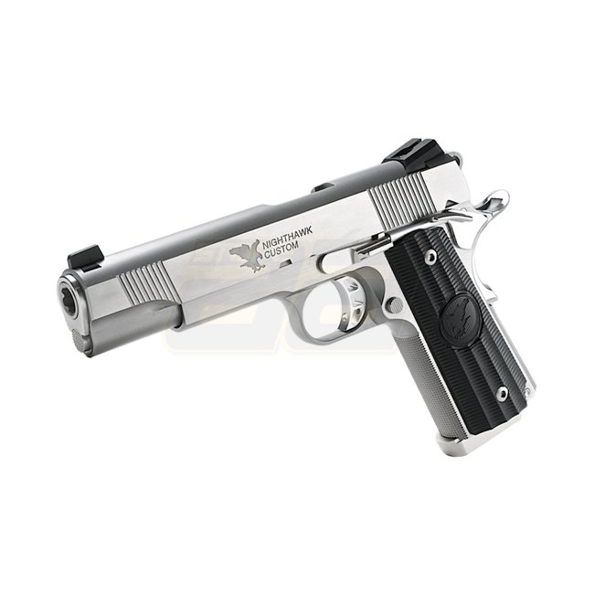 Le RWA Nighthawk Custom GRP en acier inoxydable édition limitée CO2 est un pistolet airsoft de haute qualité avec une construction en acier CNC et un revêtement de poignée en plastique. Il dispose d'une capacité de chargeur de 26 (6mm), d'une taille compa
