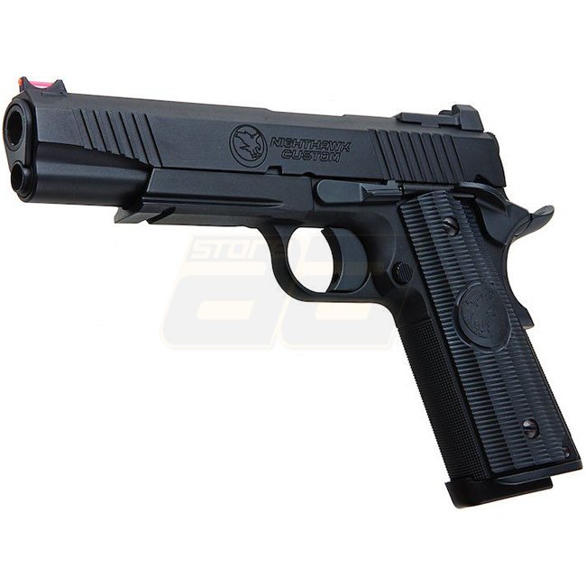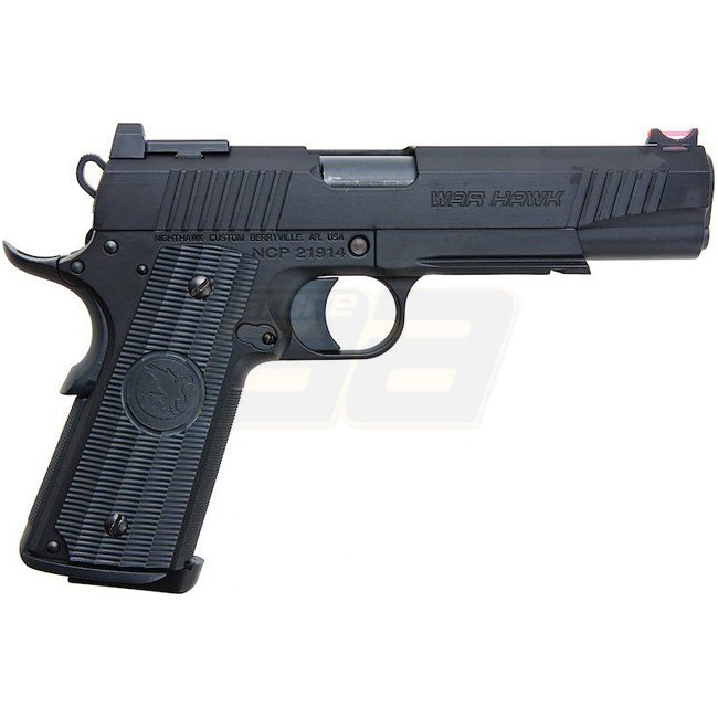 Ce pistolet à gaz blowback RWA Nighthawk Custom War Hawk est une édition spéciale de haute qualité en noir. Construction en métal, chargeur de 21 coups, longueur de 250 mm, poids de 930 g, vitesse de 280-300 FPS, mode de tir semi-automatique et hop-up rég