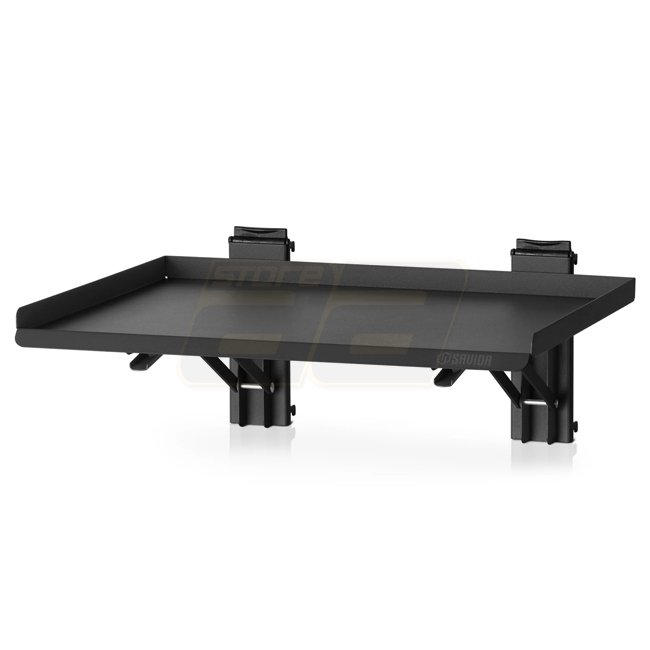 Système de support mural d'équipement Savior - Établi pliant - Noir : Établi durable et gain de place pour une intégration transparente dans le système de rail mural modulaire, offrant une solution robuste et peu encombrante pour divers espaces de travail