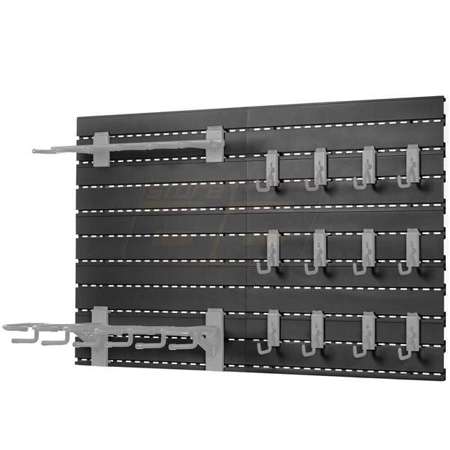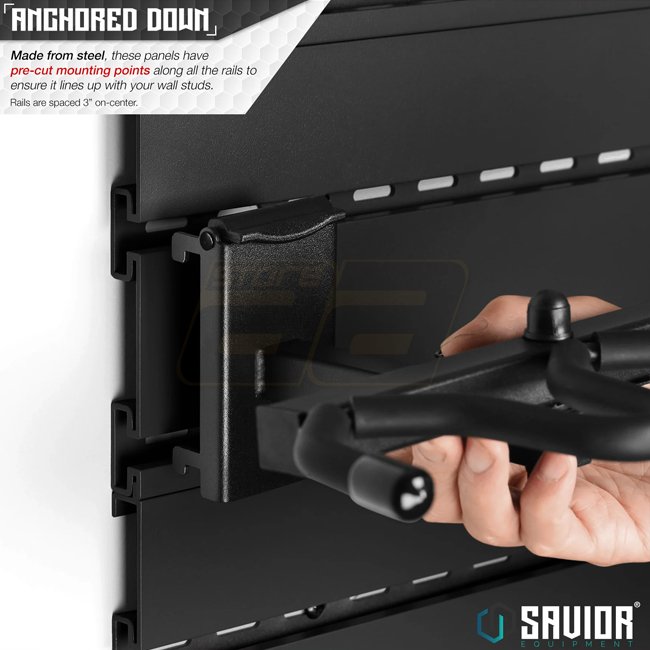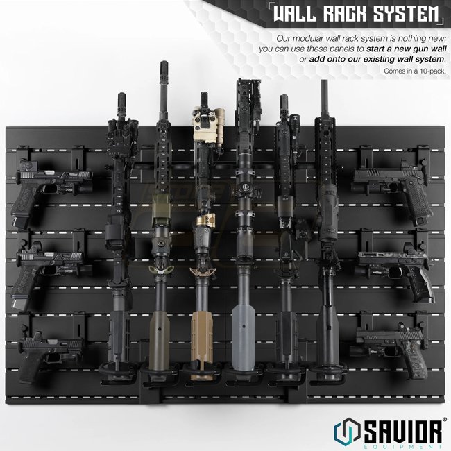 Le Savior Equiment Wall Rack System vous offre la possibilité d'accrocher des armes et des équipements sur un mur de manière pratique et esthétique. Les Wall Rack System Panels servent de base aux différents accessoires muraux à lattes centrales Savior, avec lesquels vous pouvez monter vos armes à feu et votre équipement sur les panneaux. 10 panneaux inclus.
