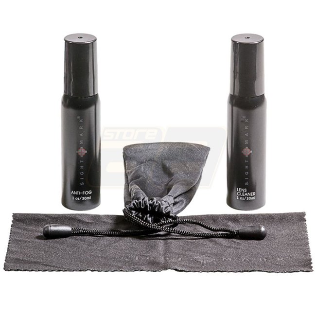 Kit de nettoyage de lentilles Sightmark : comprend des liquides de nettoyage de lentilles et anti-buée (30 ml chacun) et un chiffon en microfibre.