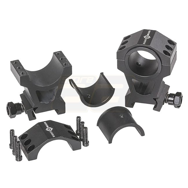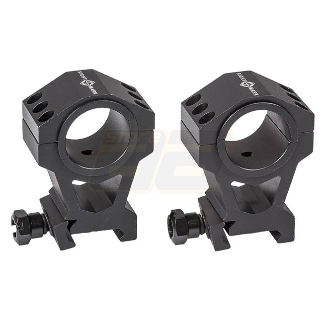 Anneaux de montage tactique Sightmark 30mm & 1 pouce - Hauteur extra-élevée. Type de montage Weaver / Picatinny, diamètre de tube 1 pouce / 25,4 mm. Fabriqué en Aluminium 6061-T6. Couple de montage : 163-190 Nm, Couple d'anneau : 25,8-29,8 Nm. Poids (pair