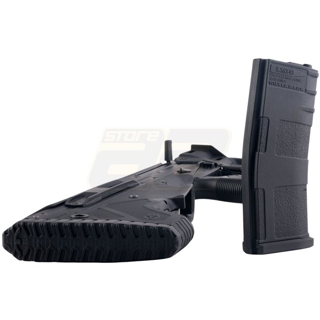 Le Silverback MDR-X Micron AEG V3 - Noir est un fusil bullpup moderne avec des commandes ambidextres, une capacité multicalibre et une construction en aluminium usiné CNC. Idéal pour les engagements à courte portée avec des fentes M-LOK et un système de r