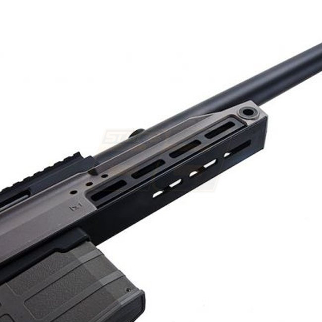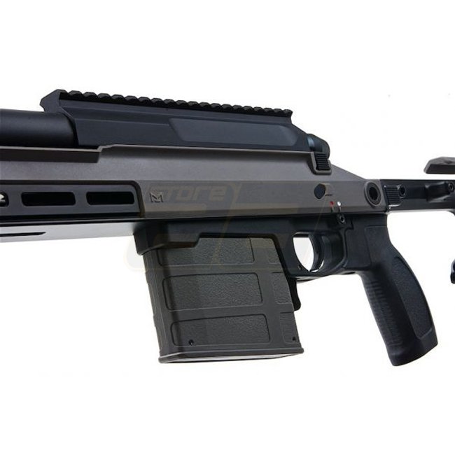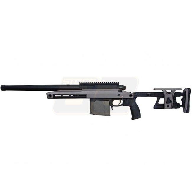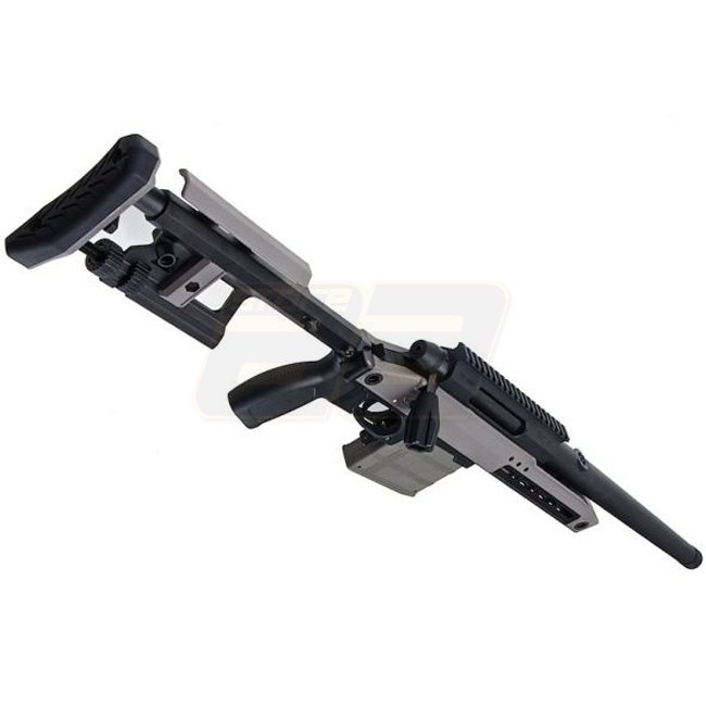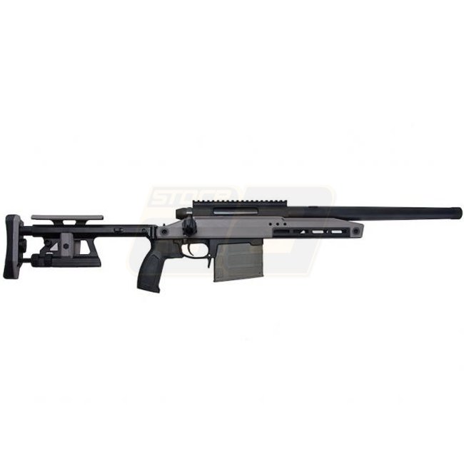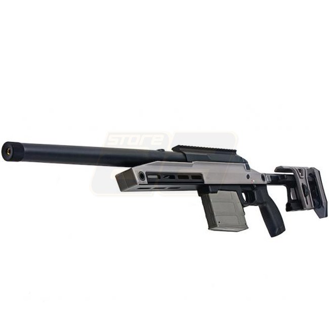 Un fusil de précision à verrou de haute qualité, idéal pour le tir à longue distance, le Silverback TAC-41 en gris loup dispose d'un matériau en métal/nylon durable, d'une capacité de chargeur de 100 coups et d'un système hop-up réglable.