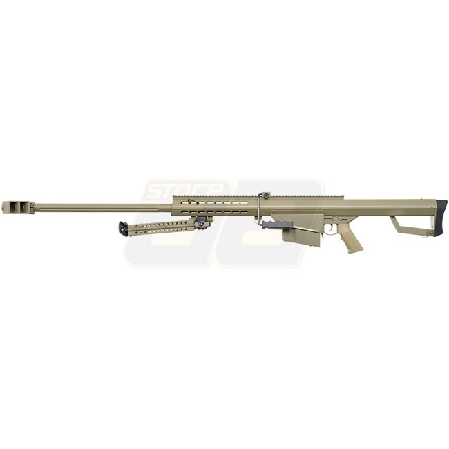 Set AEG Snow Wolf M82 - Tan : Gearbox en métal complet, moteur de type long, corps en métal avec poignée en plastique, capacité de chargeur de 190 coups, longueur de 1450 mm, poids de 5900 g, canon intérieur de 810 mm, mode de tir : Semi-Automatique & Aut