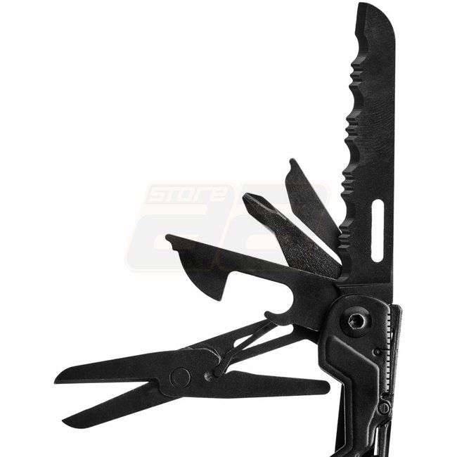 SOG Power Pint - L'outil multifonction noir est léger et compact, pesant 119g et mesurant 127mm de longueur totale. Il dispose d'une lame durable en acier 5CR15MOV et d'un élégant manche en acier inoxydable.