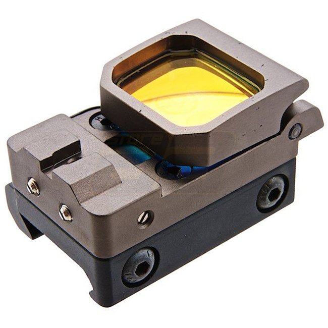 Améliorez votre jeu de visée avec la mire point rouge rabattable SOTAC Adjustable RMT en couleur Terre Sombre. Construction en aluminium, poids de 80g, grossissement 1x, éclairage rouge et vert, batterie CR2032 1x, empreinte RMR, et longueur compacte de 5