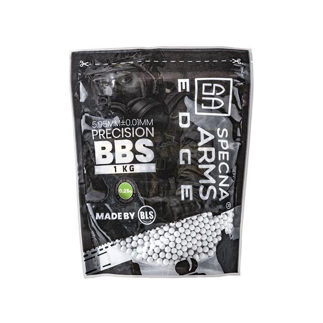 BBs de précision EDGE Specna Arms 0,25 g de haute qualité dans un pack de 1 kg. Parfait pour améliorer la précision et la performance. Couleur blanche pour une visibilité facile sur le terrain.