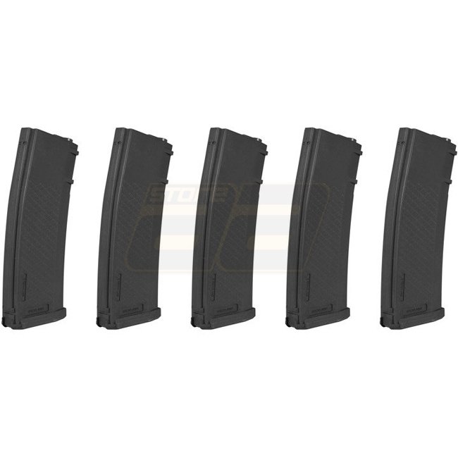 Obtenez votre ensemble de chargeurs S-Mag de 125 coups de Specna Arms en noir, parfait pour le M4/M16 AEG. L'ensemble comprend 5 chargeurs légers en polymère (155g chacun) avec une capacité de 100 coups.