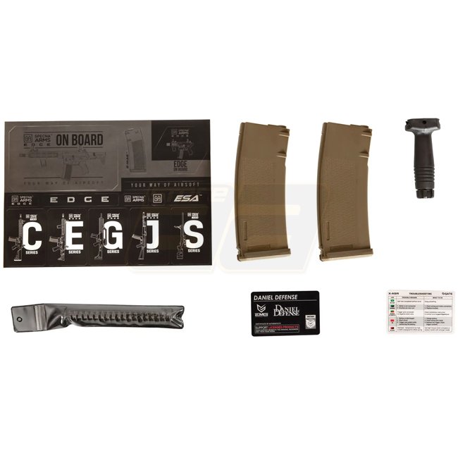 Fabriqué en coopération avec EMG Arms, l'AEG a gravé des marques Daniel Defense® sous licence. Le fabricant d'armes à feu américain se spécialise dans diverses variantes d'AR15, y compris les demandes personnalisées spéciales d'USSOCOM.