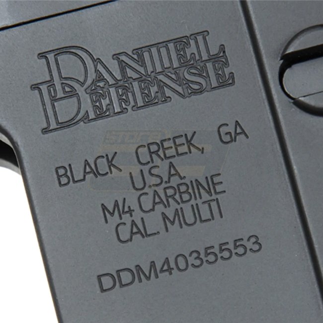 Les répliques ont été développées en collaboration avec EMG Arms et portent les marquages sous licence de Daniel Defense®. Daniel Defence est un fabricant d'armes américain bien connu qui produit, entre autres, des variantes de l'AR15 pour l'USSOCOM (United States Special Operations Command).
