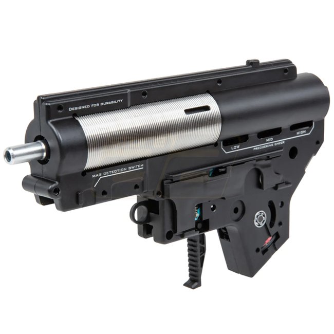 Grâce au système de changement rapide du ressort, le ressort peut être remplacé en quelques étapes seulement. Cet ensemble solide est complété par un hop-up puissant avec molette de réglage rotative et une boîte de vitesses de haute qualité avec ses pièces individuelles de haute qualité. Ces éléments garantissent une grande stabilité et précision, même en cas d'utilisation intensive et une adaptabilité maximale.
