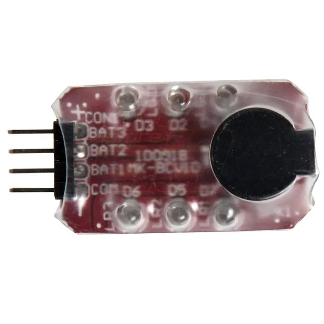 Cet appareil petit mais pratique se connecte à la fiche d'équilibrage d'une batterie LiPo ou LiIon et avertit par une tonalité si la charge de la batterie utilisée devient trop faible.