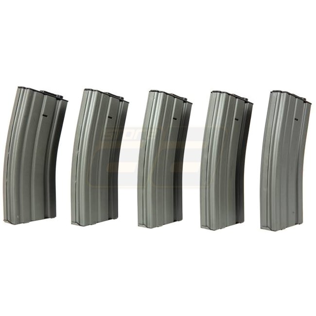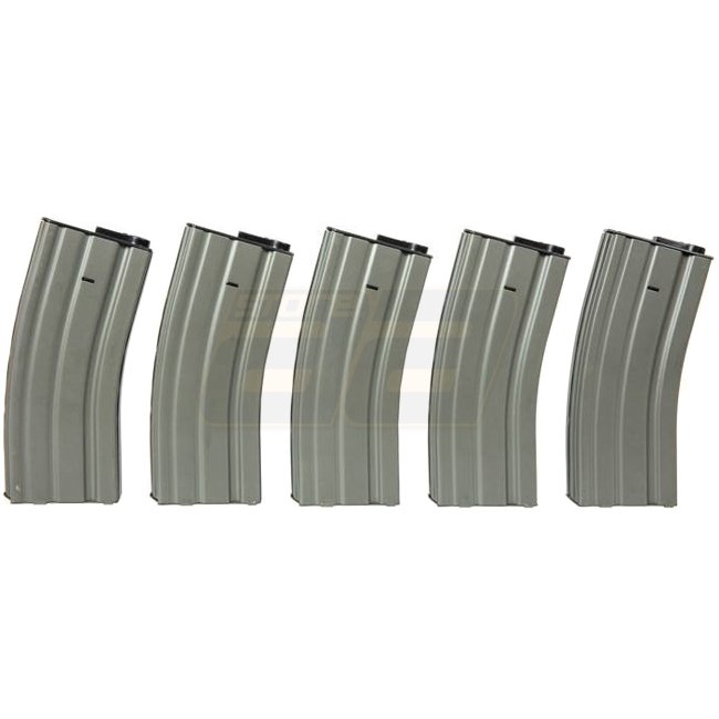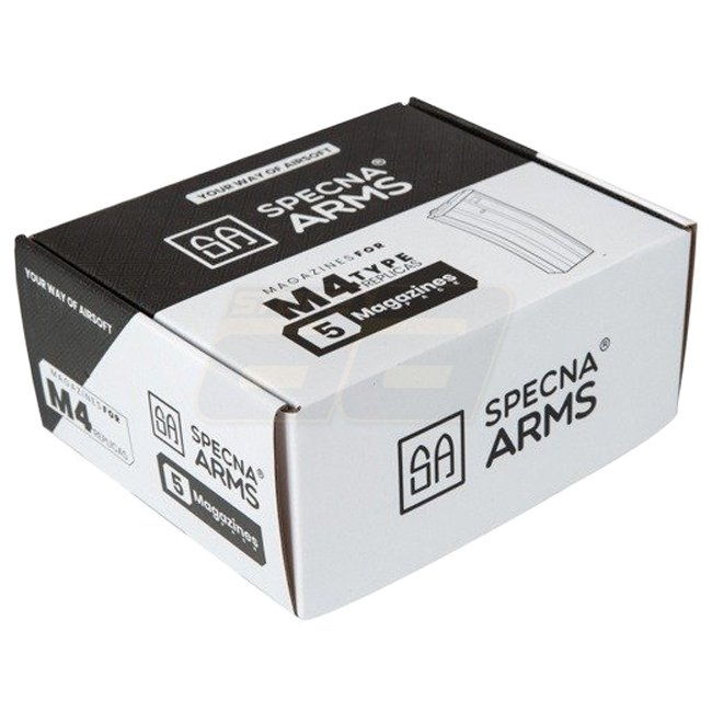 Ensemble de haute qualité de 5 chargeurs en métal Specna Arms M4 de couleur grise élégante. Chaque chargeur a une capacité de 120 coups et est compatible avec les fusils AEG M4/M16. La construction durable garantit une alimentation fiable et un rechargeme