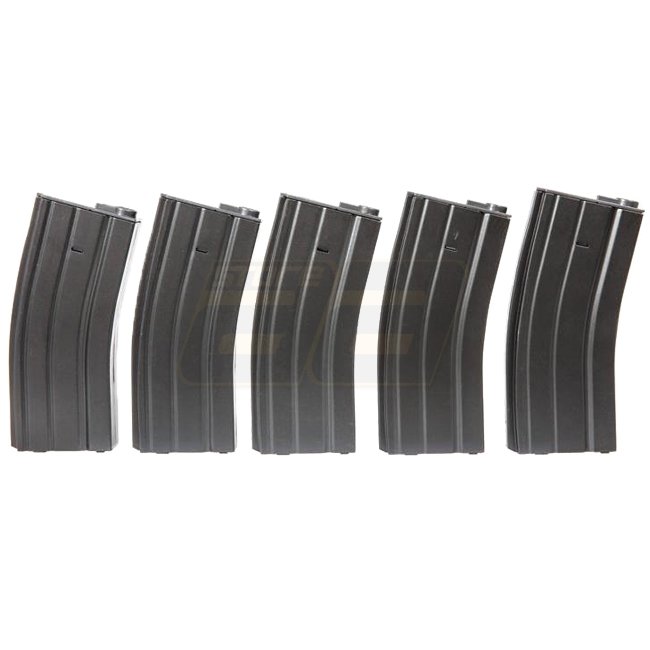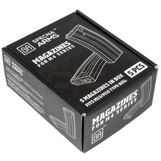Restez prêt avec le jeu de chargeurs en polymère M4 140rds de Specna Arms en gris. Comprend 5 chargeurs en polymère légers adaptés aux AEG M4/M16 avec une capacité de 140 coups.