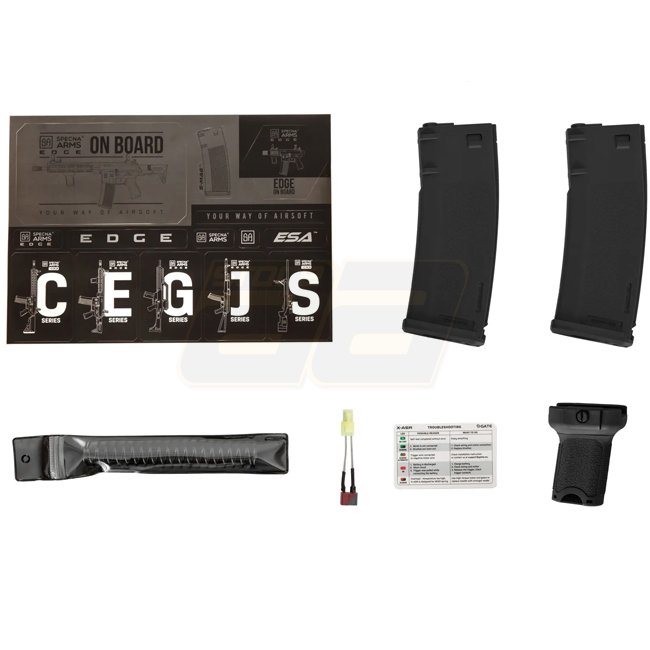 Specna Arms RRA SA-E05 EDGE AEG Crosse Light Ops - Noir : Boîte de vitesses en métal, MOSFET inclus, moteur de type long. Canon interne 250mm, modes de tir Semi-Automatique & Automatique. Filetage du canon 14mm- / CCW. Capacité du chargeur 125 (6mm). Hop
