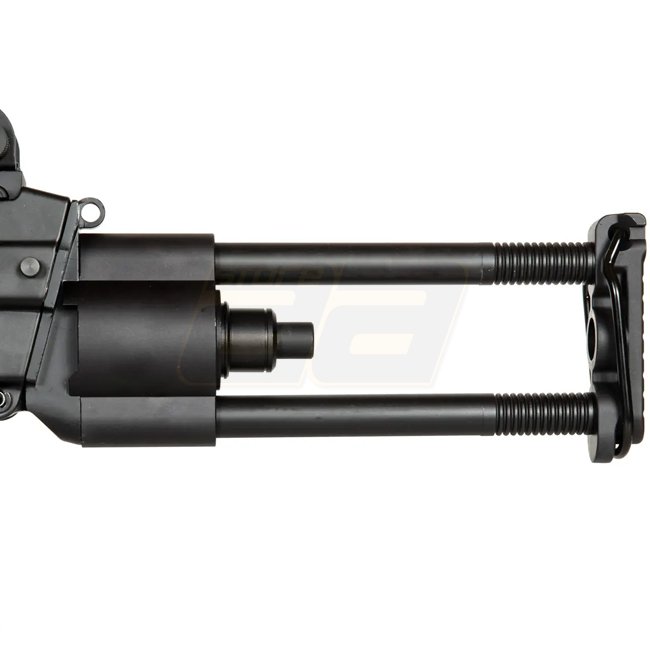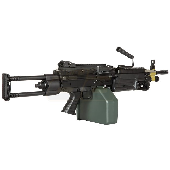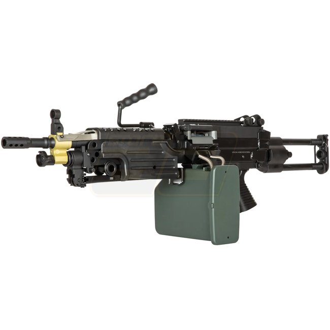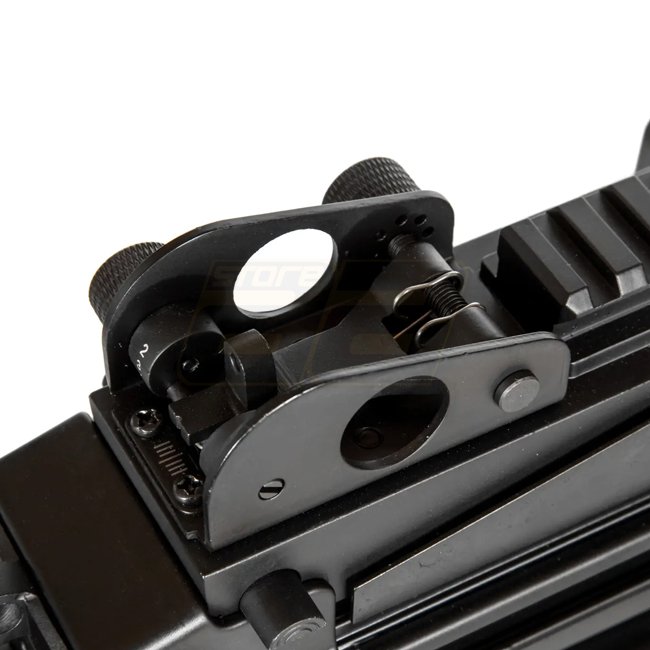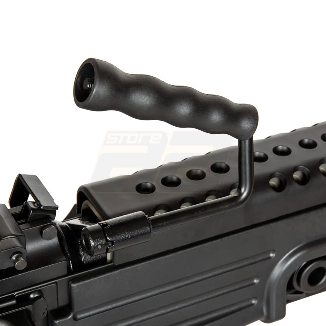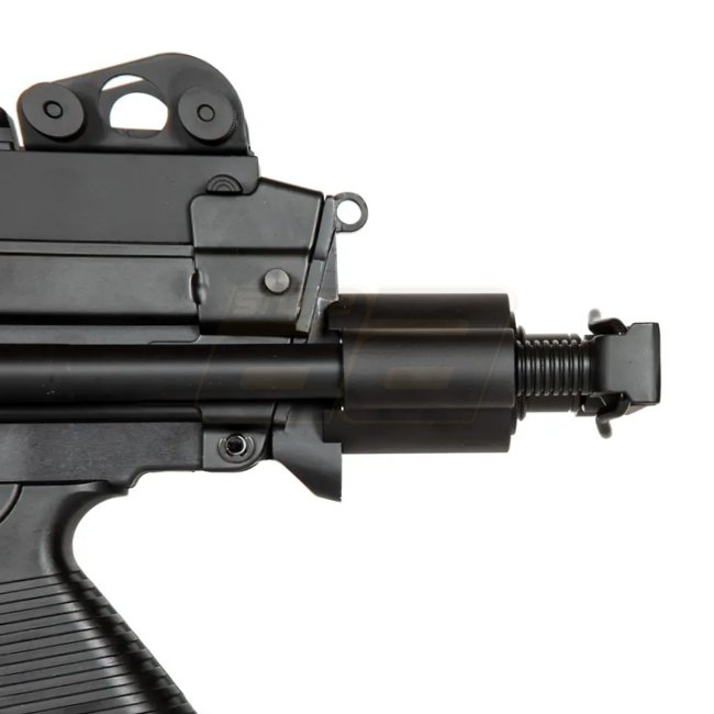 Le Specna Arms SA-249 PARA EDGE AEG en Noir est une mitrailleuse haute performance avec un corps en acier, un boîtier robuste et un système de changement rapide de ressort ESA.