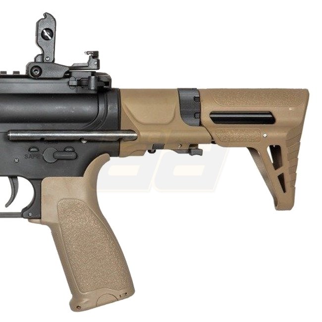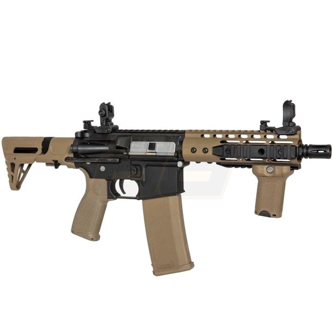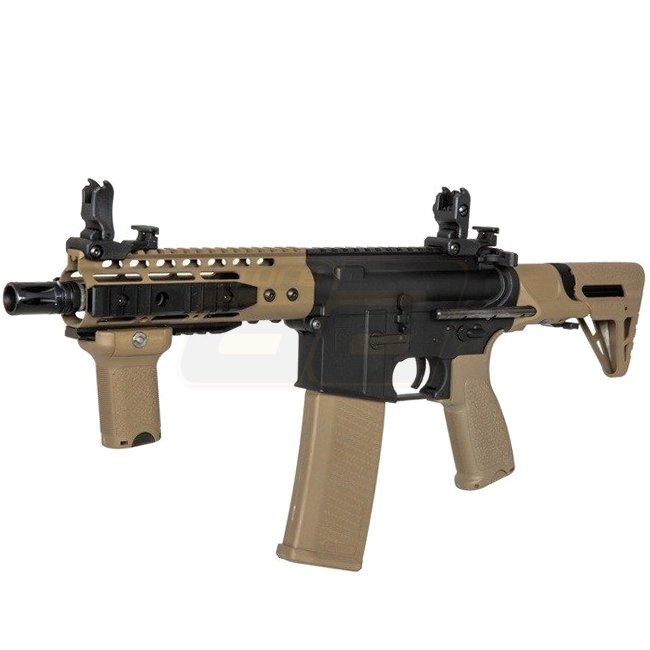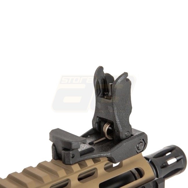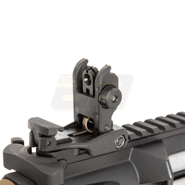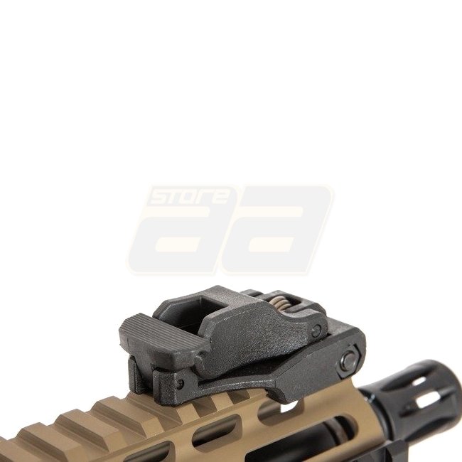 Les modèles de la E-série Specna Arms EDGE sont livrée avec une boîtier en metal nano-enduit. À l'intérieur, une "ORION“ gearbox robuste garantit fiabilité et flexibilité, car ils sont équipées d’un système de changement de ressort rapide "ESA". Grâce à cela, la performance peut être modifiées en quelques étapes simples. De plus, dans la gearbox est déjà installé un mosfet GATE X-ASR. Les pièces intégrées permettent l'utilisation de ressorts de différentes résistances (jusqu'à M140). Le canon intérieur de 6.03mm combiné avec une HopUp Unit de précision rotative assure la précision nécessaire. En plus du ressort intégré en usine, Specna Arms fournit un ressort M90 supplémentaire, ce qui peut réduire la performance de l'AEG à env. 310 FPS.