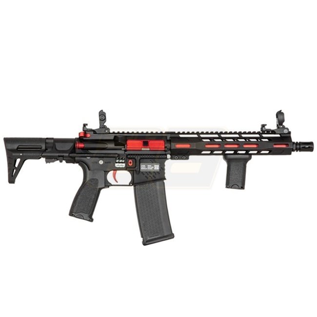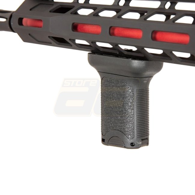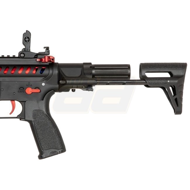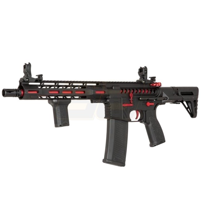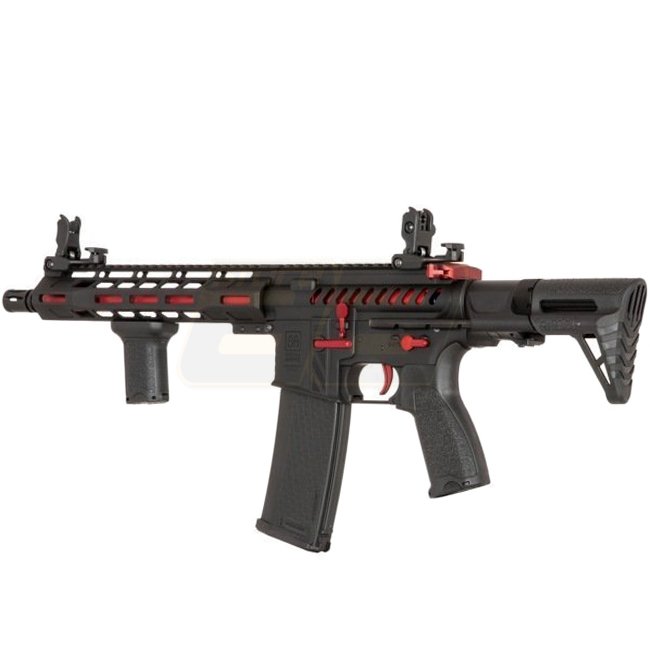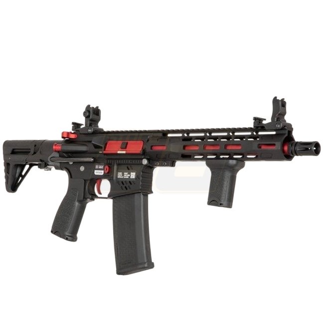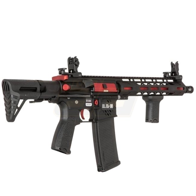 Les modèles de la E-série Specna Arms EDGE sont livrée avec une boîtier en metal nano-enduit. À l'intérieur, une "ORION“ gearbox robuste garantit fiabilité et flexibilité, car ils sont équipées d’un système de changement de ressort rapide "ESA". Grâce à cela, la performance peut être modifiées en quelques étapes simples. De plus, dans la gearbox est déjà installé un mosfet GATE X-ASR. Les pièces intégrées permettent l'utilisation de ressorts de différentes résistances (jusqu'à M140). Le canon intérieur de 6.03mm combiné avec une HopUp Unit de précision rotative assure la précision nécessaire. En plus du ressort intégré en usine, Specna Arms fournit un ressort M90 supplémentaire, ce qui peut réduire la performance de l'AEG à env. 310 FPS.