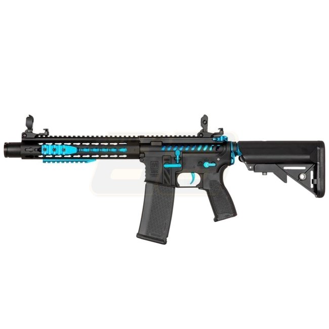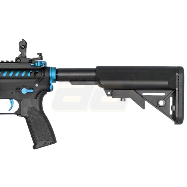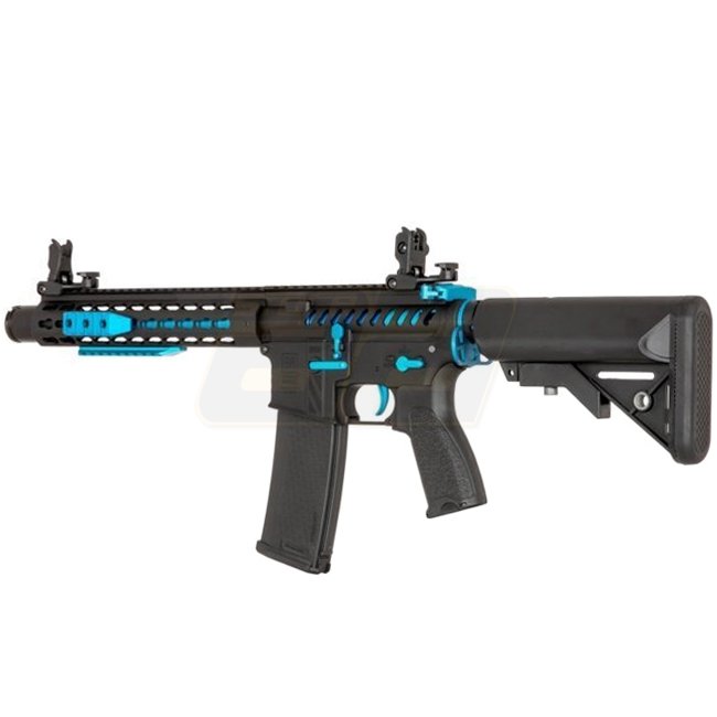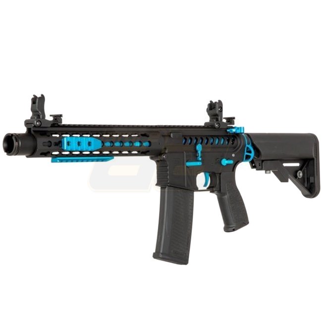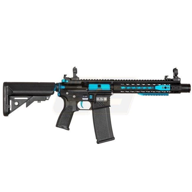 Les modèles de la E-série Specna Arms EDGE sont livrée avec une boîtier en metal nano-enduit. À l'intérieur, une "ORION“ gearbox robuste garantit fiabilité et flexibilité, car ils sont équipées d’un système de changement de ressort rapide "ESA". Grâce à cela, la performance peut être modifiées en quelques étapes simples. De plus, dans la gearbox est déjà installé un mosfet GATE X-ASR. Les pièces intégrées permettent l'utilisation de ressorts de différentes résistances (jusqu'à M140). Le canon intérieur de 6.03mm combiné avec une HopUp Unit de précision rotative assure la précision nécessaire. En plus du ressort intégré en usine, Specna Arms fournit un ressort M90 supplémentaire, ce qui peut réduire la performance de l'AEG à env. 310 FPS.