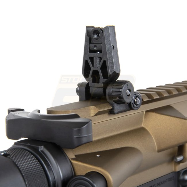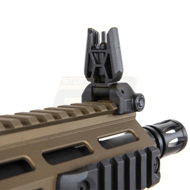 Specna Arms SA-P23 Prime ASTER II ETU Moteur Brushless AEG - Chaos Bronze est une réplique airsoft de haute performance conçue pour un usage intensif. Il est doté d'une garde-main M-Lok et d'une crosse Sopmod spacieuse pour de grandes batteries. Équipé de
