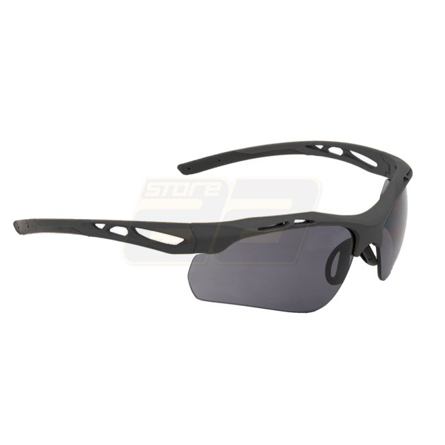 Lunettes de soleil SwissEye Attac - lunettes noires avec lentille en polycarbonate, système de ventilation et protection 100 % UVA, UVB et UVC. Comprend des verres de rechange orange et clairs, un sac en microfibre et un étui. Conforme aux normes EN 12312