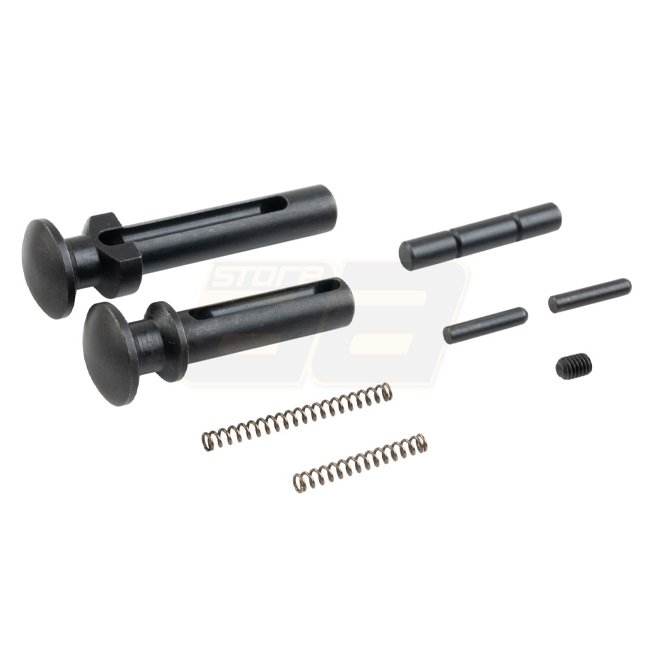 Kit de pin take‑down allongé par T8 pour fusils GBBR Tokyo Marui MWS. Fabriqué en acier robuste, il réduit le jeu du récepteur et facilite la préhension et le retrait des pins.