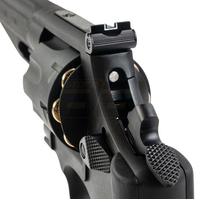 Le Tanaka S&W M627 est une réplique fidèle du célèbre S&W R8, un revolver moderne construit sur la plateforme robuste N Frame. La capacité réelle de 8 coups en .357 Magnum ou .38 Special est reproduite avec précision. Cette version est basée sur le modèle Performance Center, avec une action exceptionnellement fluide.