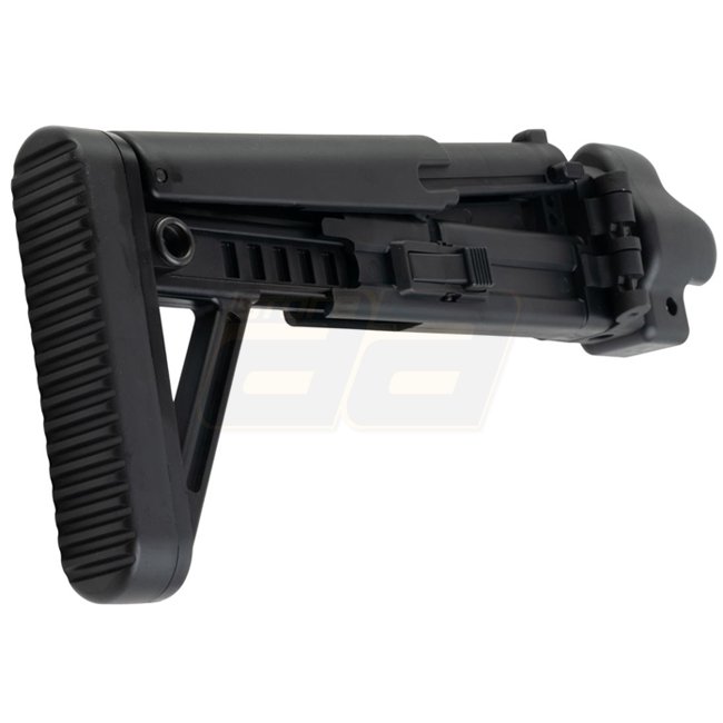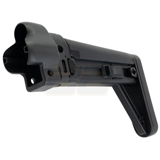 Crosse pliante compacte pour plateformes MP5. Charnière de verrouillage solide pour un déploiement sécurisé. Compatible avec VFC MP5 GBBR et modèles similaires.