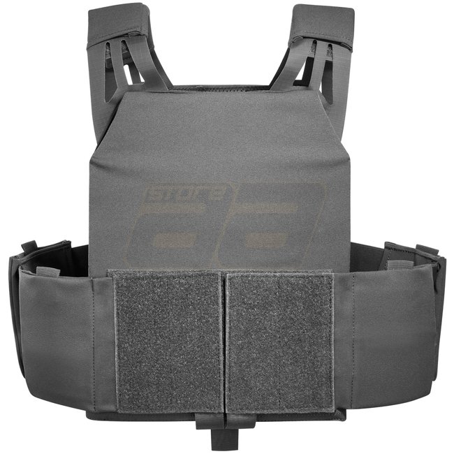 Porte-plaque discret et léger, conçu pour une utilisation secrète. Dispose d'une attache latérale élastique ajustable, de poches latérales élastiques fixes et amovibles, et est compatible avec les plaques SAPI courantes. Face avant neutre sans possibilité