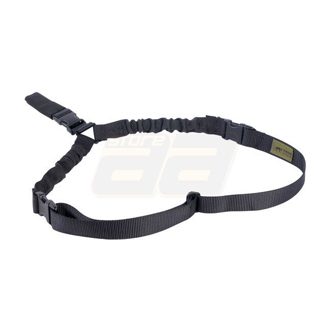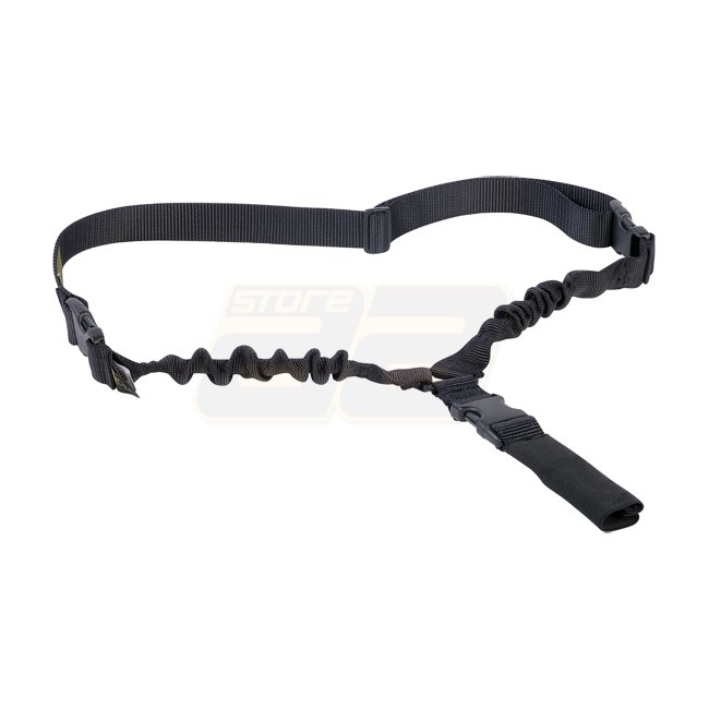 Bretelle fonctionnelle à un point fabriquée à partir de sangle durable de 30 mm avec mousquetons en métal, cordon élastique pour l'ajustabilité, et boucles à déclenchement rapide pour une libération d'urgence rapide. Dimensions : 105 x 3 cm. Poids : 240g.