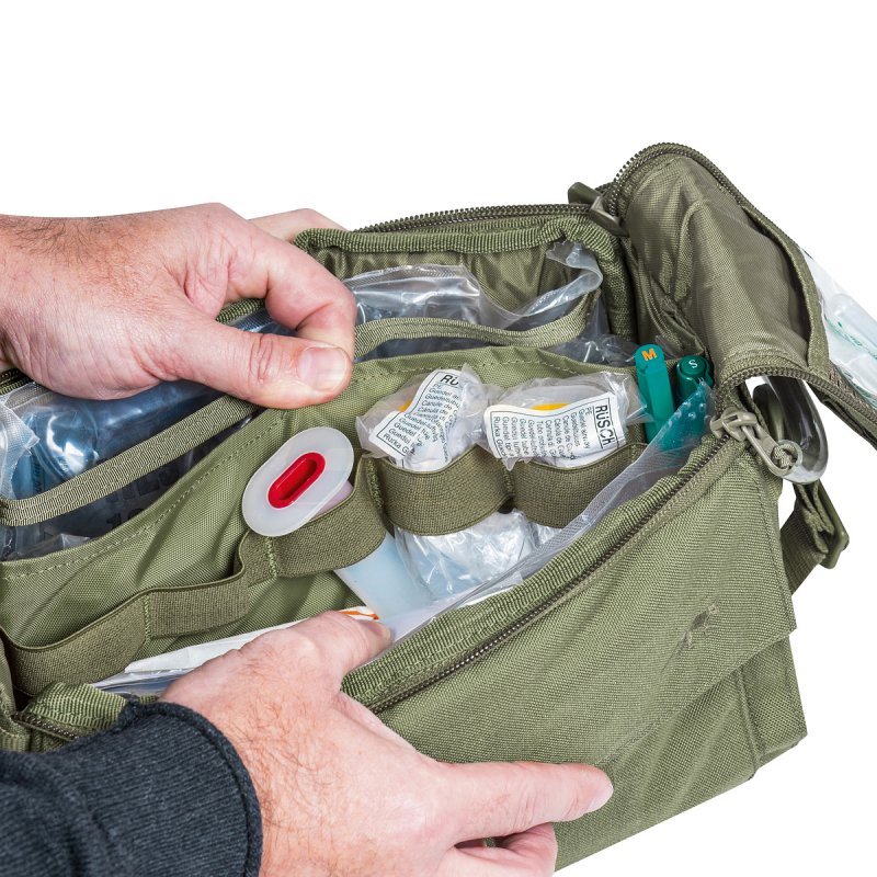 Sac banane pour équipement médical avec un volume de 3 litres et système LP MOLLE. Peut également être utilisé comme sac à épaule. Bandoulière détachable, fermetures éclair parallèles pour un accès rapide, fixation pour ciseaux, conçu pour être attaché à