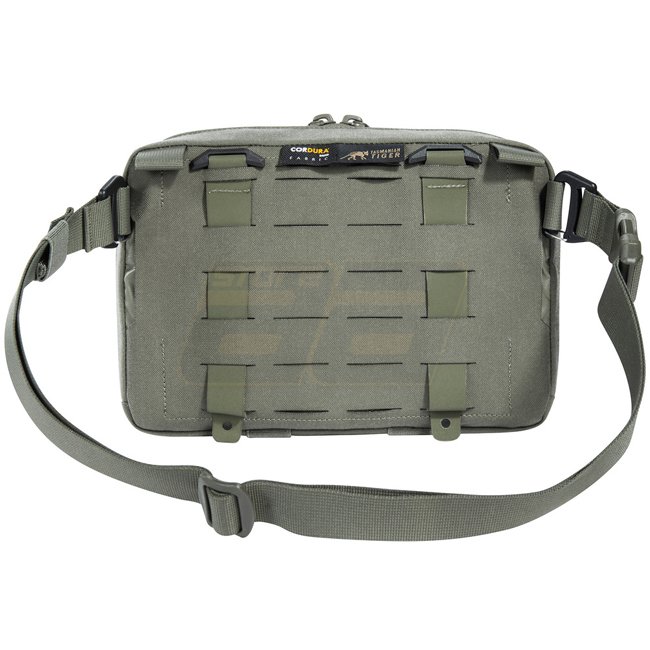 Le sac dispose d'un système inversé MOLLE amovible pour la fixation aux porte-assiettes et aux sacs à dos. De plus, il peut être accroché avec des boucles au TT Survival Pack ou à d'autres surfaces MOLLE avec des boucles appropriées. Il existe également un passage pour un passant de ceinture de 50 mm. À l'intérieur se trouvent des poches plates en filet, des boucles élastiques et une grande surface auto-agrippante MOLLE.